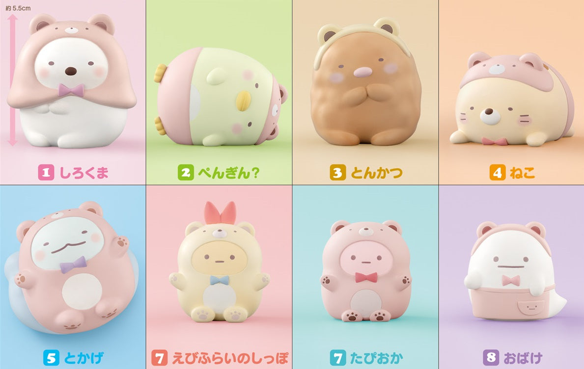 Sumikko Gurashi characters prefer to live quiet lives in the corner of rooms ("sumikko"). Introduced in 2021, they've been adored by fans of "Kawaii" characters. Now they are officially available as a part of Bandai Shokugan's "FRIENDS" soft vinyl mini figure collection series made super popular by "Kirby Friends" . This is a must have item for all Kirby Frinds fans! Wave 8 of Sumikko Gurashi Friends features a warm and cozy "Shirokuma (Polor Bear) Cafe" them. Varying in size, the tallest figure is over 2". Assortment of 8 characters come in a box of 12. Character line up: Shirokuma, Penguin?, Tonkatsu, Neko, Tokage, Ebifurai no Shippo (Fried Shrimp Tale), Tapioca and Obake. This is not a blind purchase item.