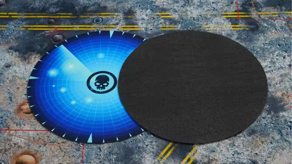 Rubber based (mousepad) Objective markers with 40mm base marked + 3 inch scoring area and marked middle point. With highly detailed printed design.